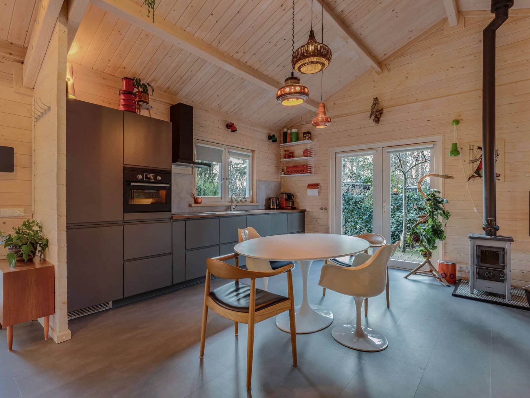 Toen dit plekje in 2021 in ons bezit kwam, wisten we dat we een houten huis wilden bouwen met een zo natuurlijk mogelijke uitstraling. Dit is goed gelukt vinden we zelf. De binnenzijde hebben we behandeld met Paneelilakka, in een whitewash tint. Hiermee voorkom je vergeling van het hout en het is eenvoudig schoon te maken.