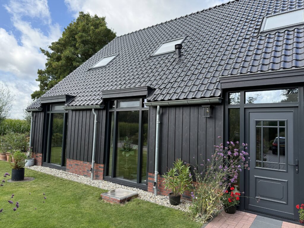 In 2022 hebben wij dit huis in Slochteren gebouwd. Het grootste gedeelte van de bouw hebben we zelf gedaan. Ik werk zelf als timmerman en hecht veel waarde aan kwalitatief goede materialen, dit maakt echt het verschil. De verf van FinnColors kenden we al en wilden we graag als beits op de Siberische Lariks planken gebruiken.